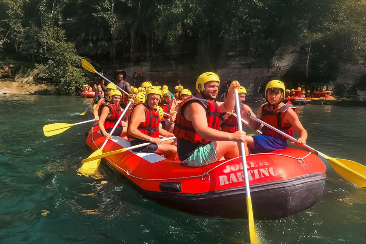 A: Сам спуск по реке длится около 2 часов с короткими остановками. С учётом дороги из Алании, инструктажа и обеда стоит рассчитывать примерно на целый день. В программе обычно есть остановка для купания в прохладной воде и фото, так что рафтинг становится ярким событием всего отпуска.